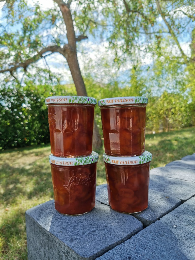 Nous avons mĂ©langĂ© notre miel et nos mirabelles du jardin, pour obtenir une savoureuse confiture artisanale de mirabelle au miel đ