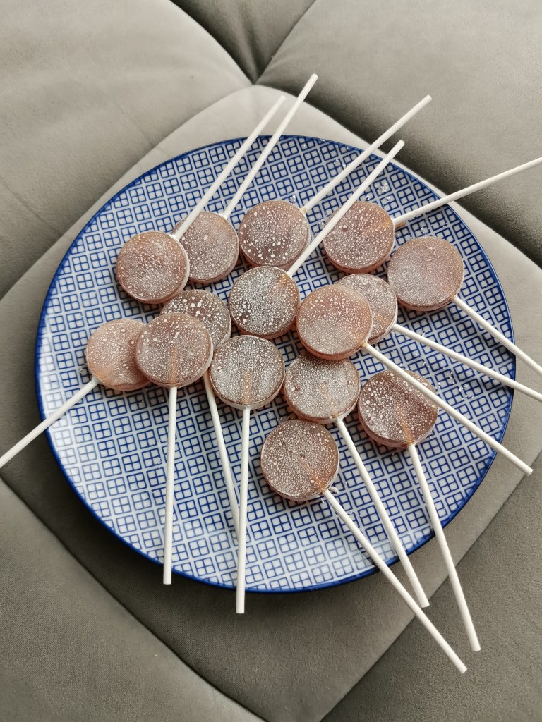 Fabrication maison de bonbons et de sucettes au miel de nos ruches. Sur commande, ils seront disponibles Ă la mi-novembre đ