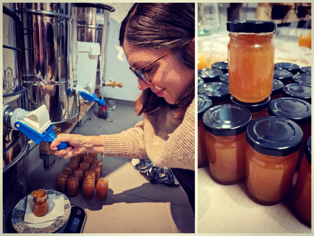 đA good activity for a winter Sunday. Filling in 100 small jars with our delicious summer honey! The 125g format is not available in units but only in large orders from 50 jars. It is still possible to order some from us for your upcoming weddings or other events, don’t wait for too long!