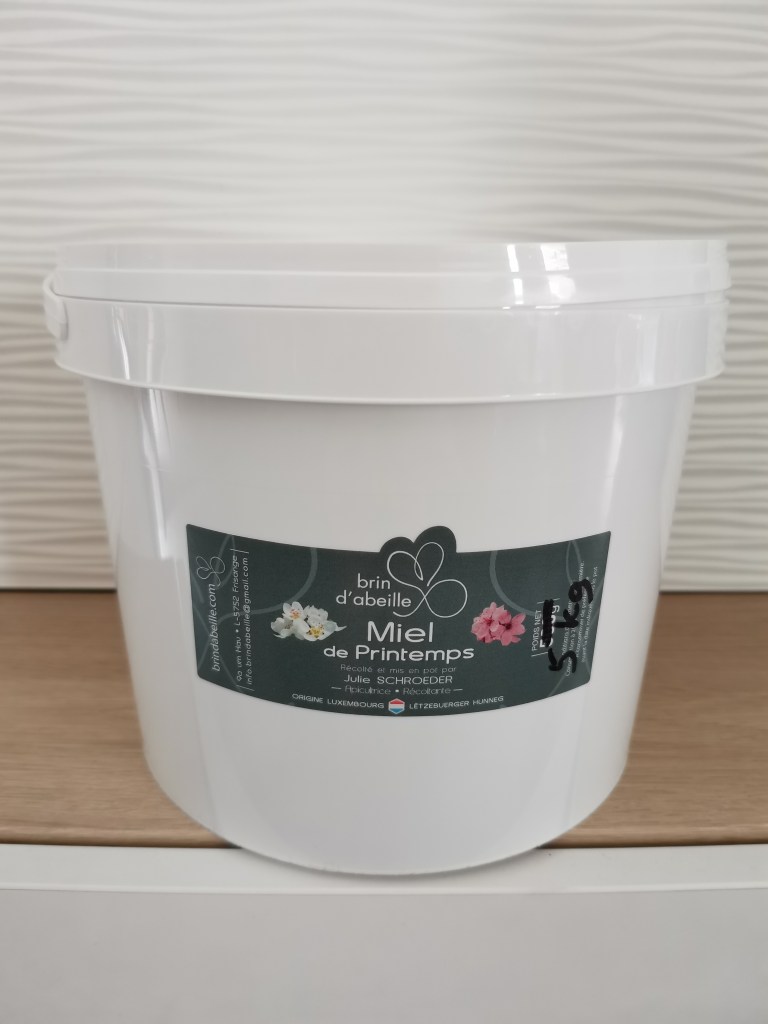 Et petite surprise qui va permettre de faire des rĂ©serves, avant notre dĂ©part fin juillet nous vous proposons exceptionnellement nos miels de printemps et d’Ă©tĂ© luxembourgeois, en plus des pots habituels de 250 et 500g, en seau de plusieurs kilos Ă un prix prĂ©fĂ©rentiel !