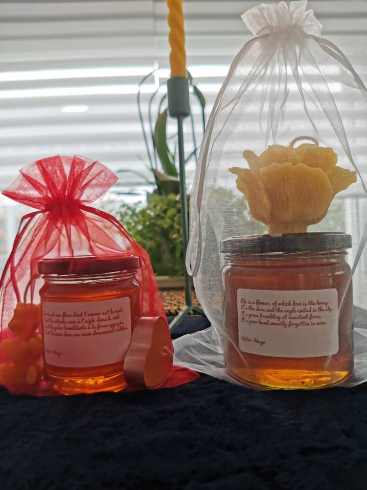 - Un pot de 250g de notre miel de montagne avec étiquette texte de Victor Hugo