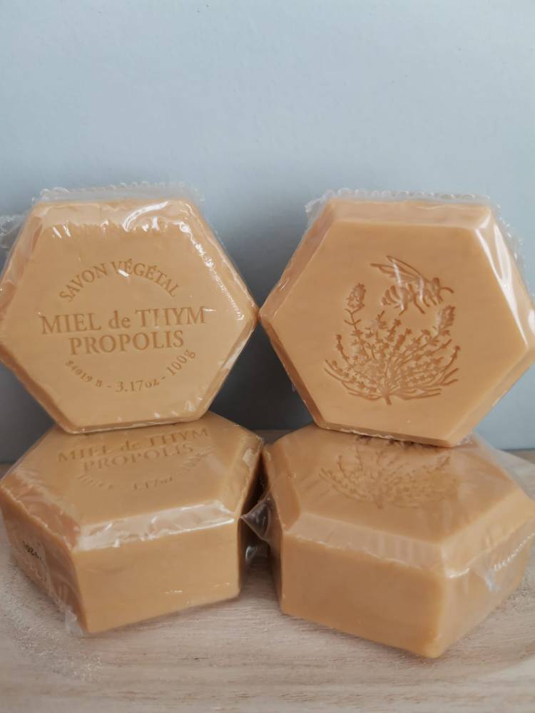 Savon fabriqué en Provence, au miel de thym et à la propolis, avec un agréable parfum de verveine.